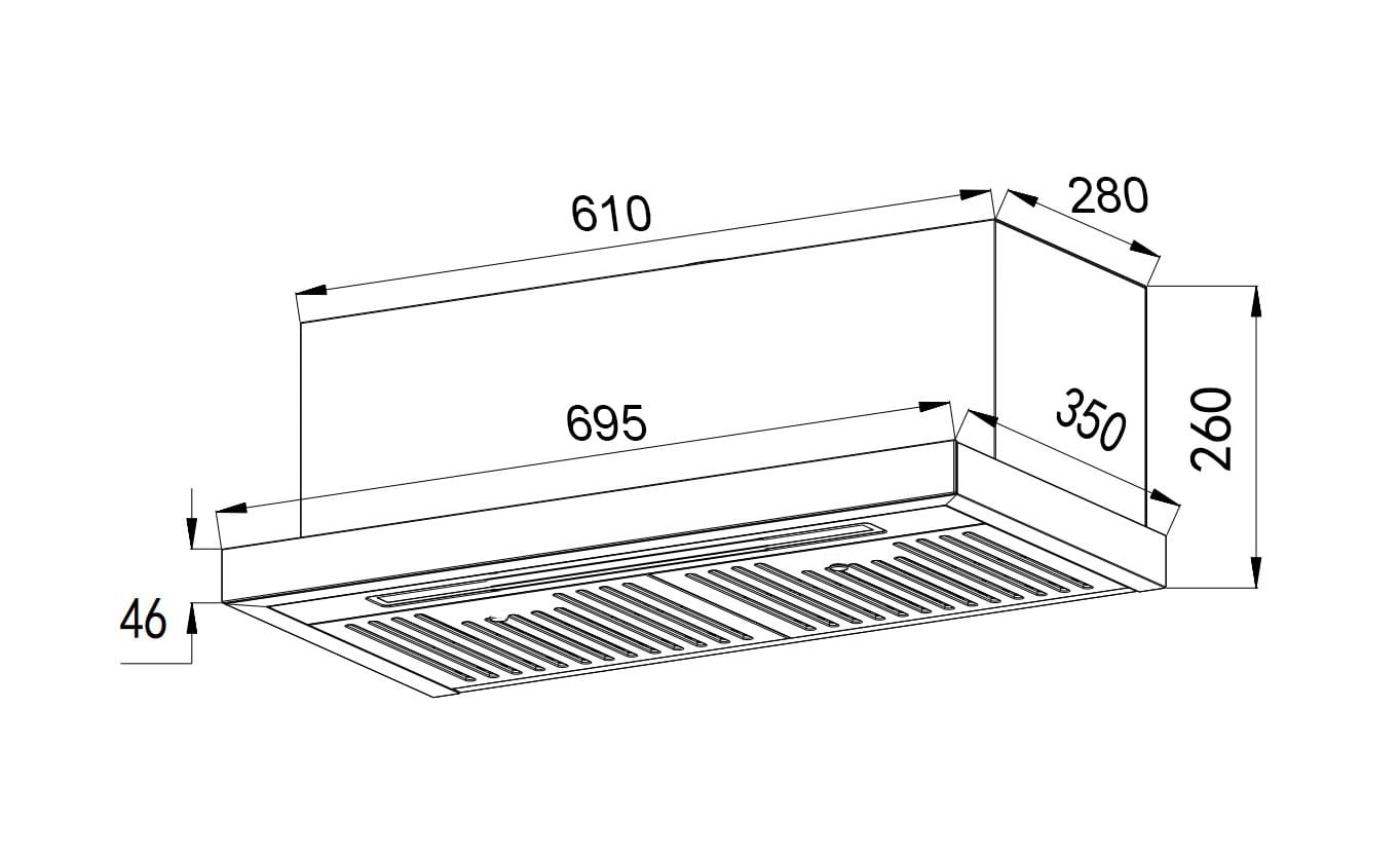 - Kích thước sản phẩm: Rộng 700mm x Sâu 350mm x Cao 260mm